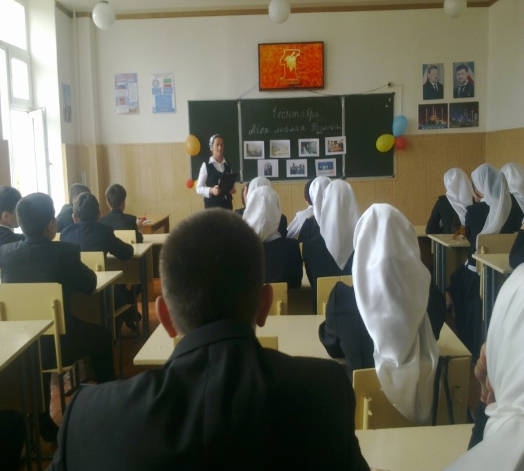 05.09.20145 сентября школа отмечала День республики, проведена общешкольная торжественная линейка, Хасаевой Т. Х. и Магомаевой Р.Б., был подготовлен литературный монтаж « Цвети, республика моя!». Информационный стенд « Моя республика, Чечня!» подготовила библиотекарь М-Хаджиева Айзан. Мероприятие имело большое воспитательное значение для учащихся, способствовало воспитанию чувства гражданской ответственности и патриотизма, чувства долга перед Родиной.