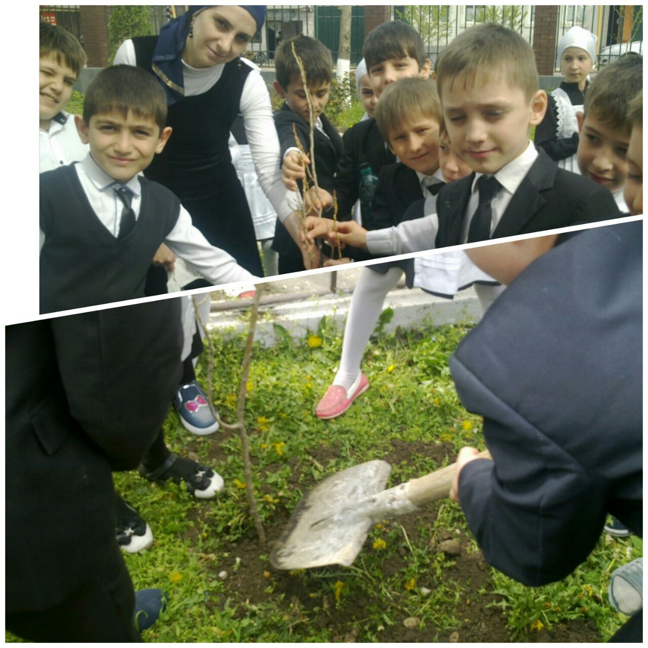 Младшие участники акции "Посади саженец" обучающиеся 2 в класса под руководством кл. руководителя Эльсултановой Д.С.