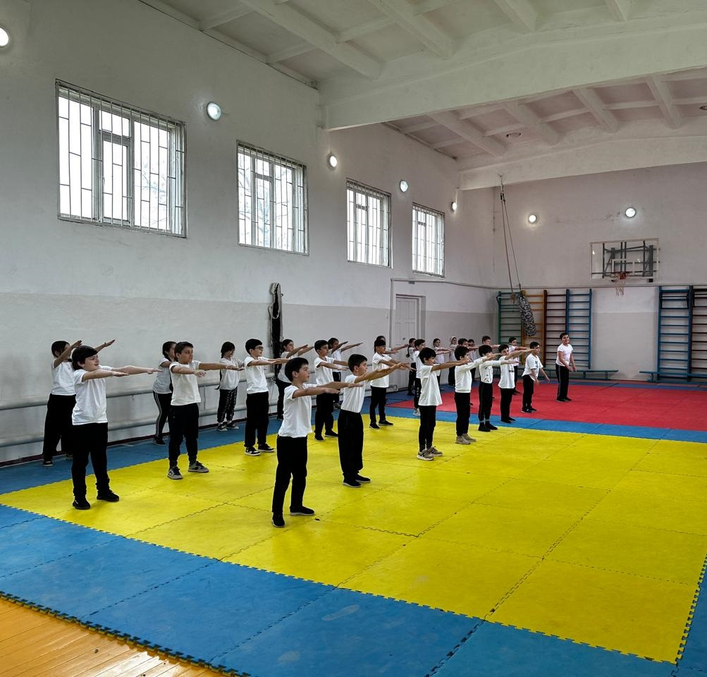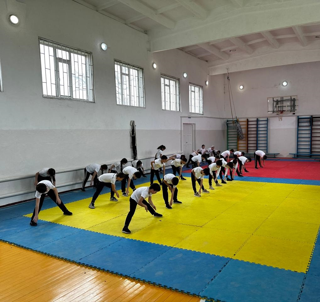 В МБОУ "СОШ № 2 г. Урус-Мартан" прошла акция «Зарядка с чемпионом». Зарядку провел КМС по вольной борьбе Эльмурзаев Алавди Русланович.