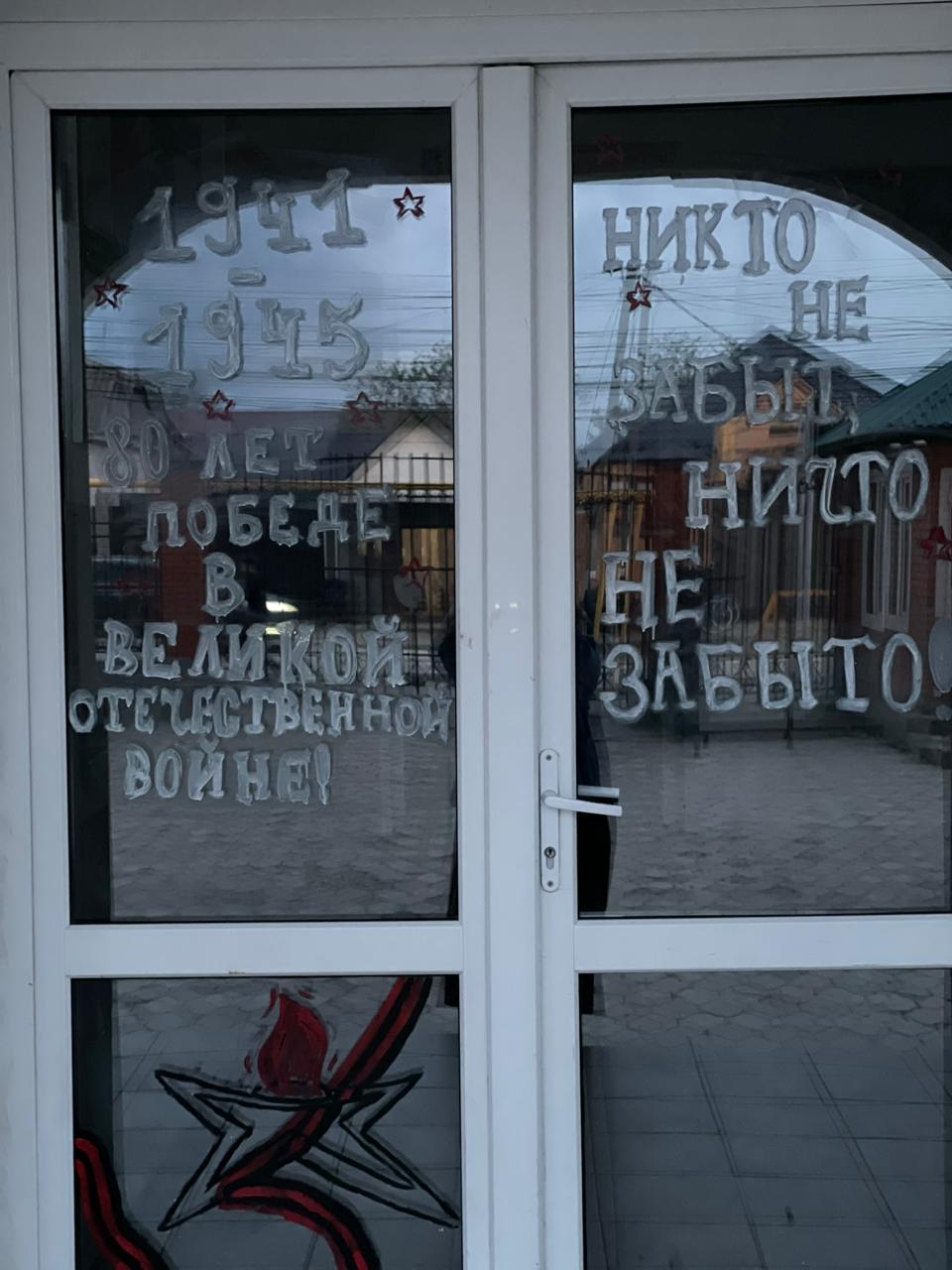 08.05.2025В рамках проводимых мероприятий, посвященных 80-летию Победы в Великой Отечественной войне, обучающиеся 8 Б класса под руководством Ясаевой П.М. приняли участие в акции «Окна Победы».Акция направлена на сохранение исторической памяти о героизме и подвиге советского народа в Великой Отечественной войне и объединение граждан вокруг общих ценностей.Акция позволяет педагогам и наставникам вместе «прикоснуться к истории, обсудить важность подвига советского народа и внести свой вклад в сохранение исторической памяти.