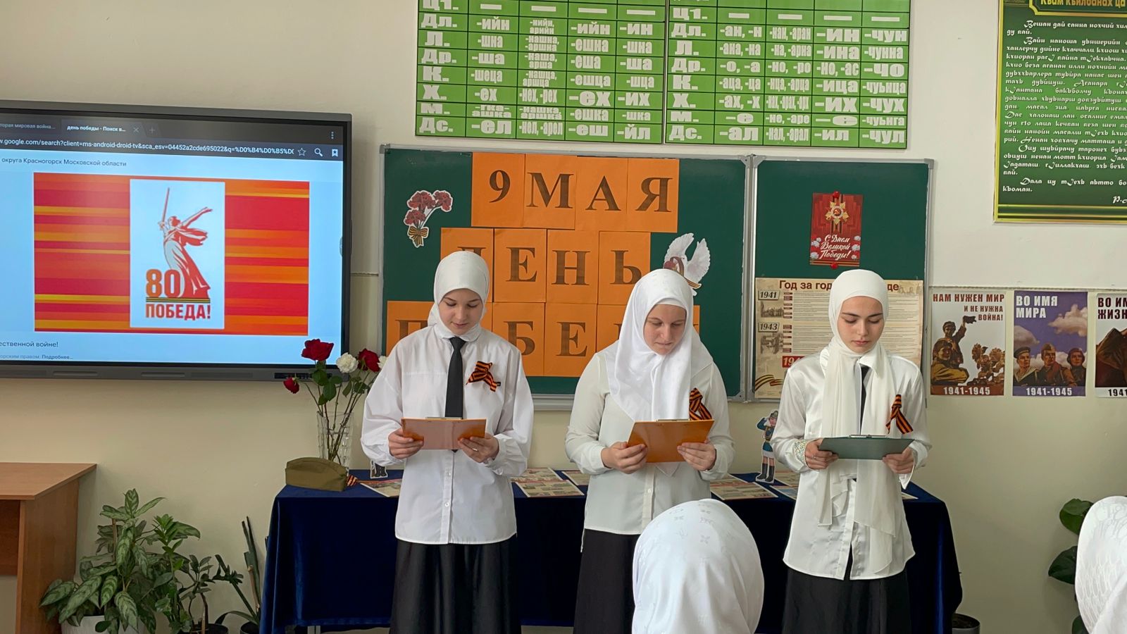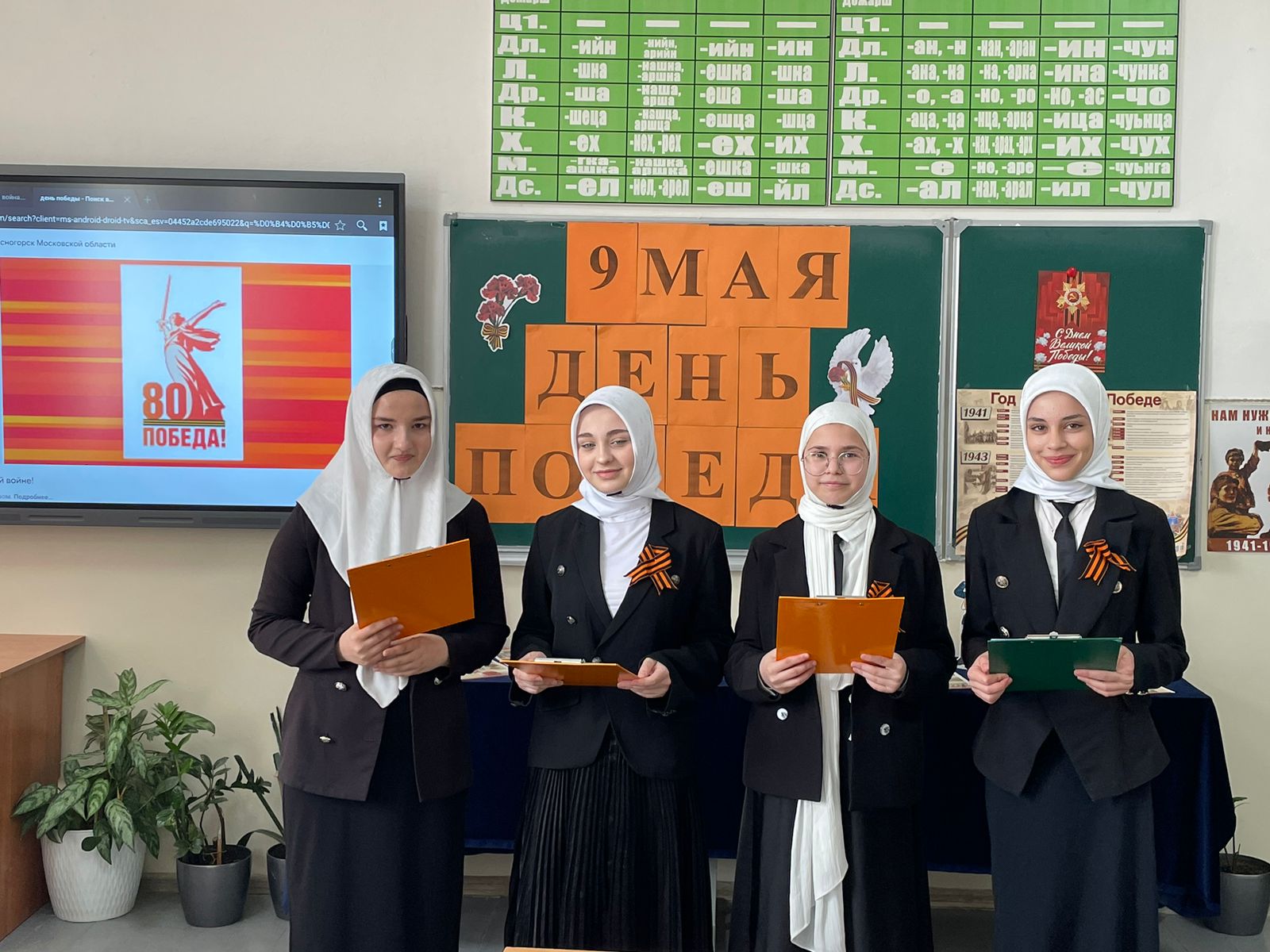 07.05.2025В преддверии 80-летия Победы в Великой Отечественной войне, в 8 Б классе кл.руководитель Ясаева П.М.провела классный час, посвященный Дню Победы.Цель классного часа: ознакомление детей с историей Великой Отечественной войны; развитие личности, обладающей качествами гражданина – патриота Родины. Способствование получению и расширению знаний учащихся о Великой Отечественной войне.Привитие обучающимся чувства глубокого уважения и почтения к защитникам Родины. Воспитание любви к Родине, уважение к подвигам наших предков.
