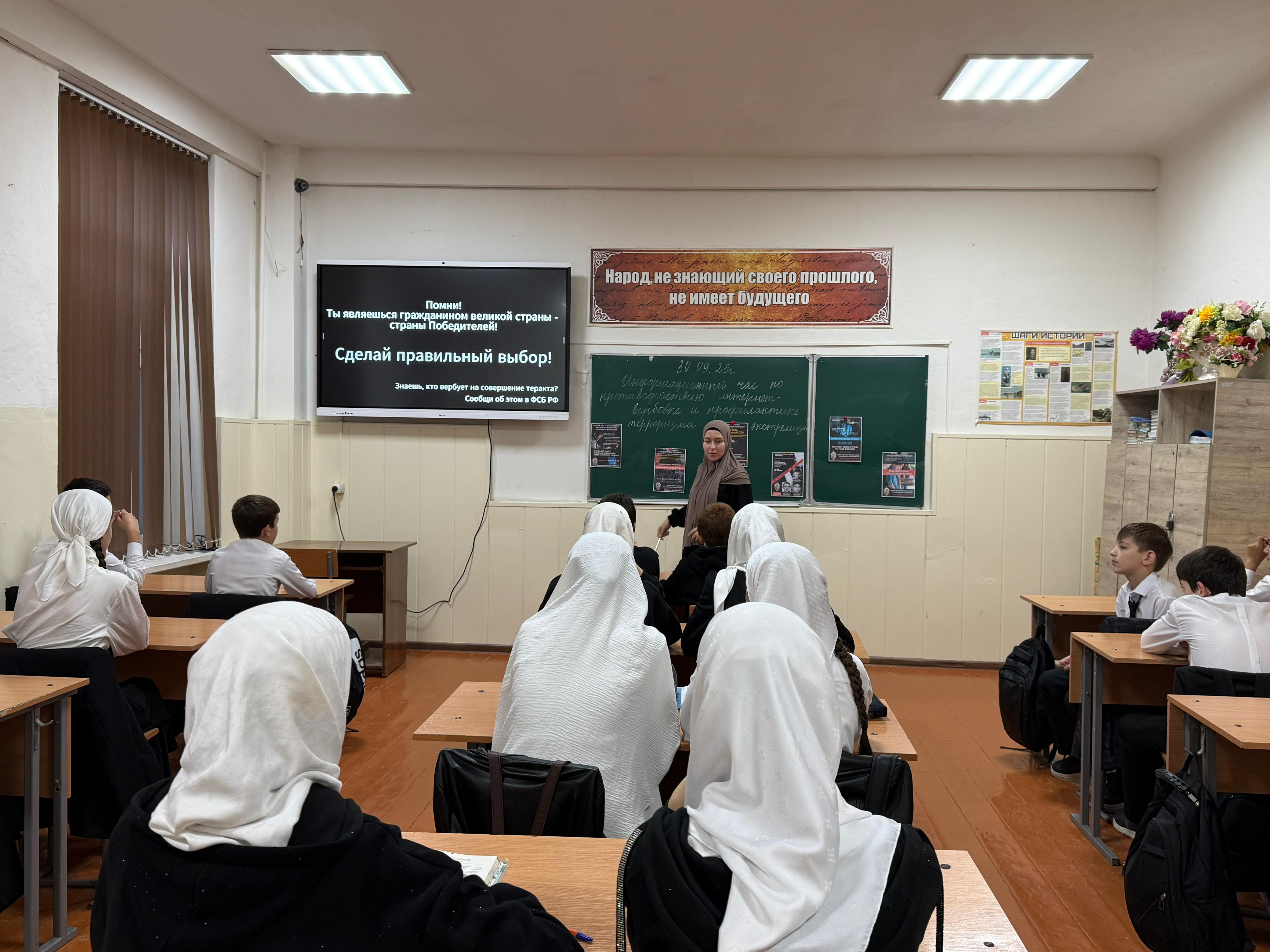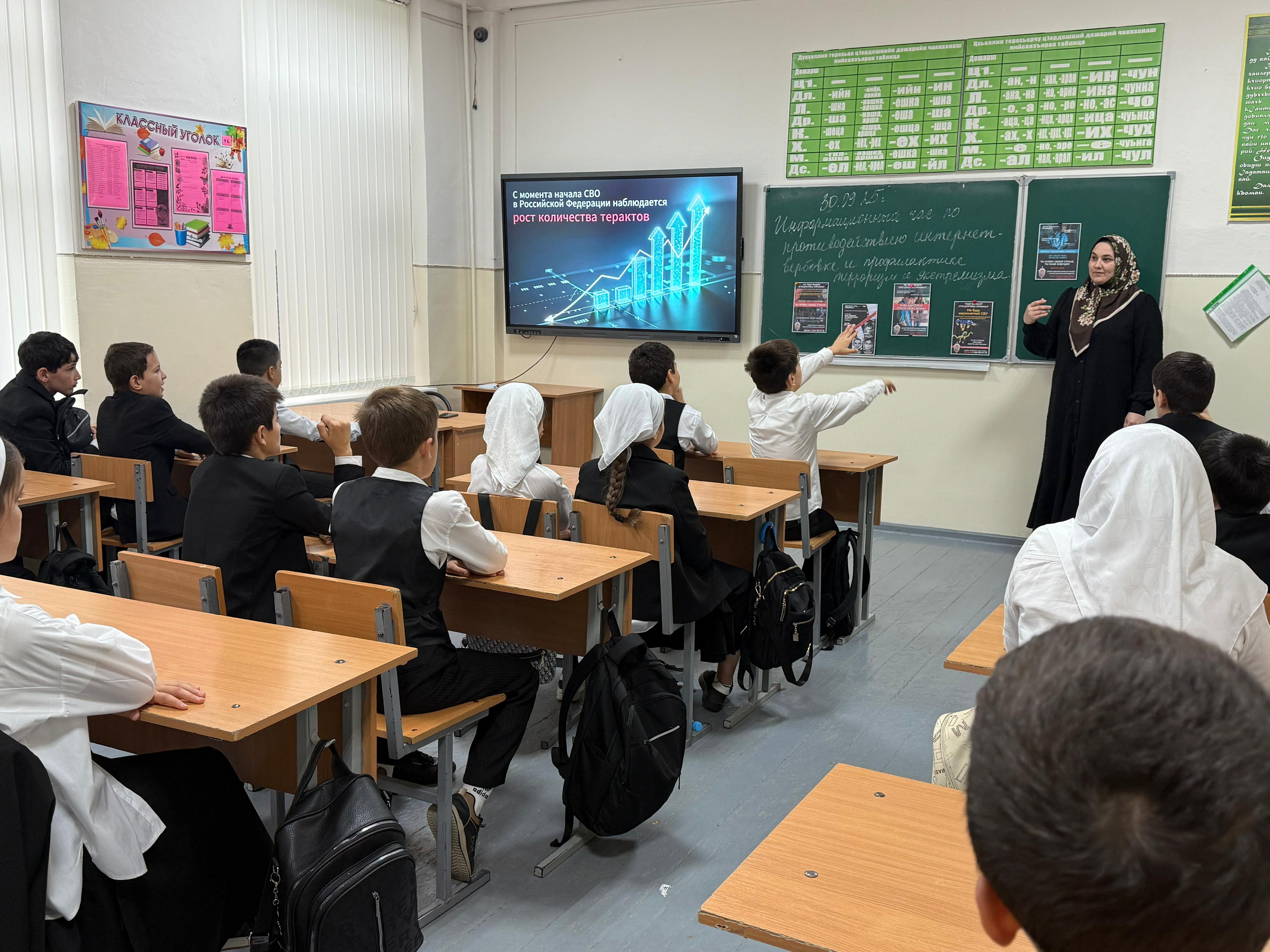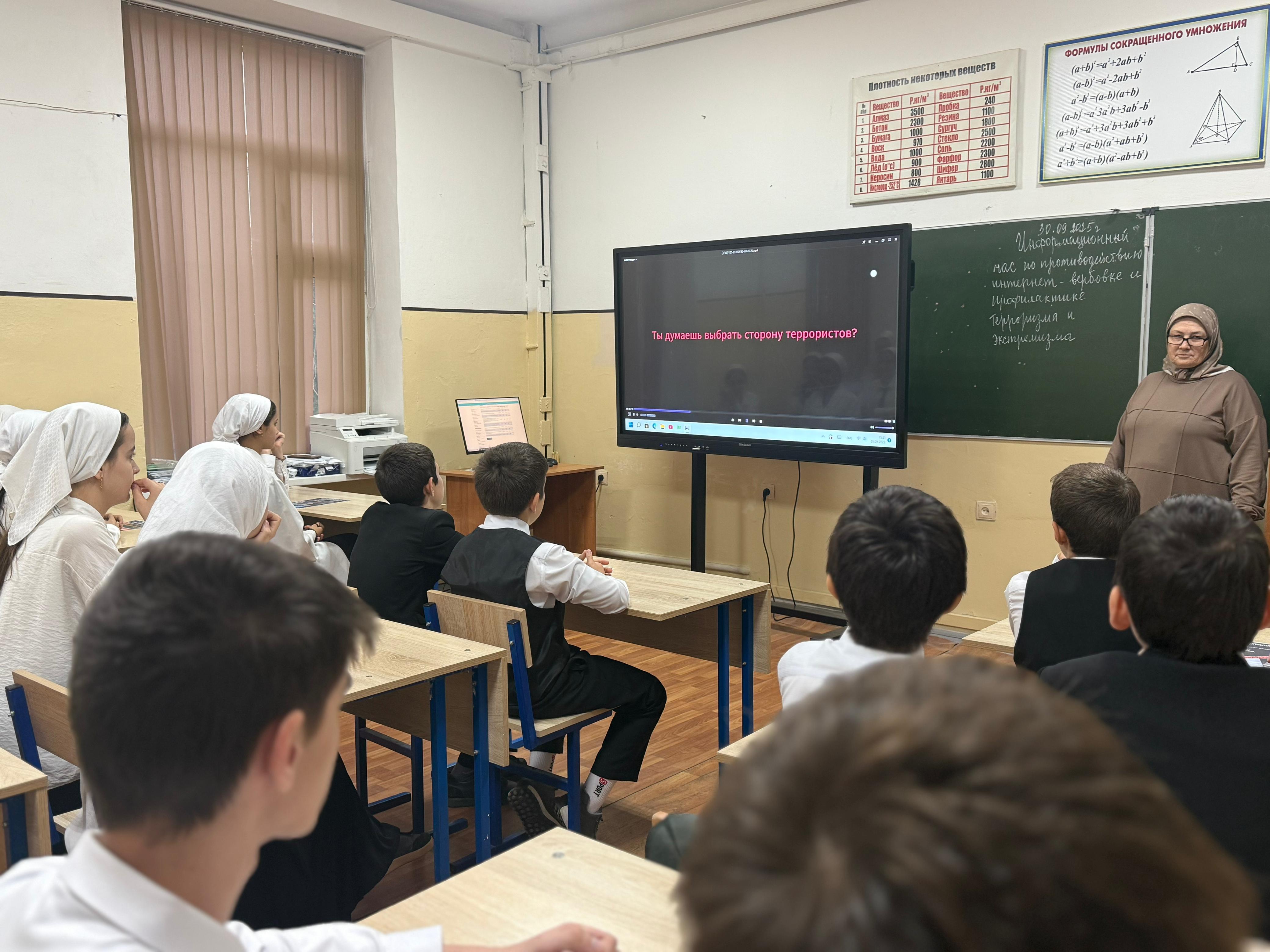 30.09.202530 сентября 2025г. в МБОУ «СОШ№2 г.Урус-Мартан» прошли просветительские мероприятия направленные на противодействие интернет -вербовке и профилактике терроризма и экстремизма, при координирующей роли УФСБ по ЧР.
