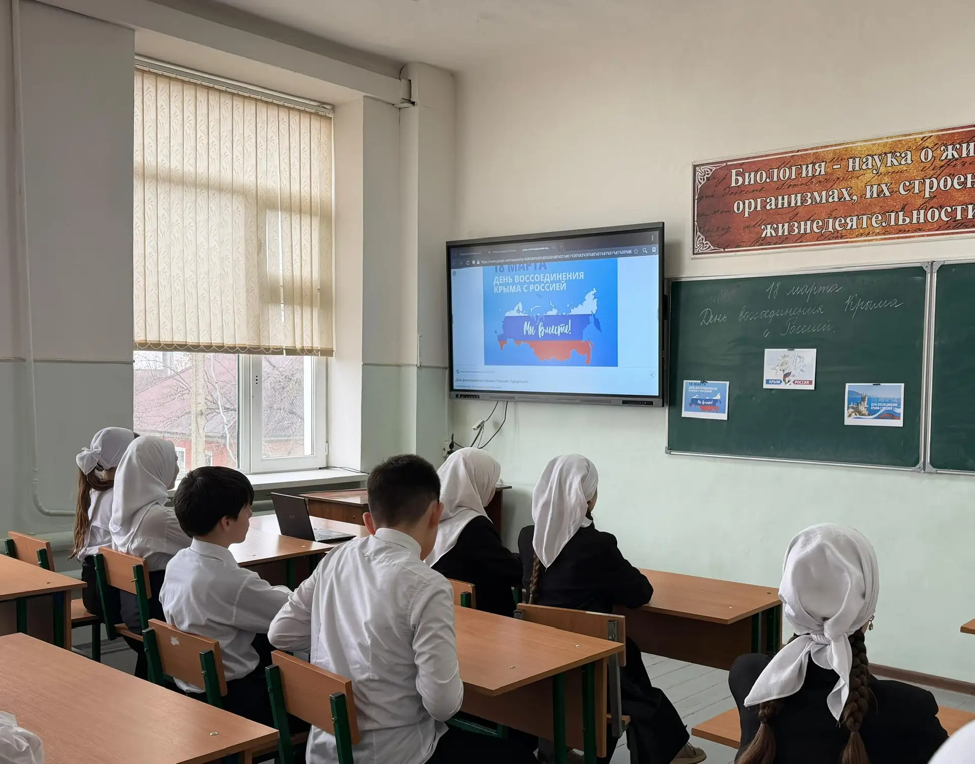 В МБОУ "СОШ №2 г. Урус-Мартан" были проведены классные часы на тему "Воссоединение Крыма с Россией".